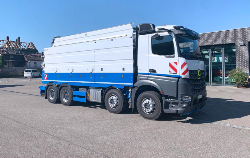 Bereits 2020 wurde mit den Vorbereitungen für die Anschaffung eines großen Spülwagens begonnen: ein 4-Achser mit 625 PS, mit einem Kesselvolumen von 11.500 Litern und einem Wasservorrat von 4.000 Liter sollte es werden. Geplant, getan: nach vergleichsweiser, schneller Lieferzeit und vielen Feinabstimmungen standen die stolzen 32 Tonnen des neuen Reinigungsfahrzeugs, vor der Tür und konnte auf unserem Standort in Bremen Findorff einziehen.